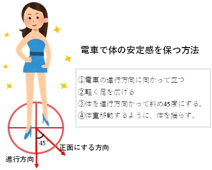 - 少し斜め立つことで、揺れた時に、踏ん張ることが出来る。