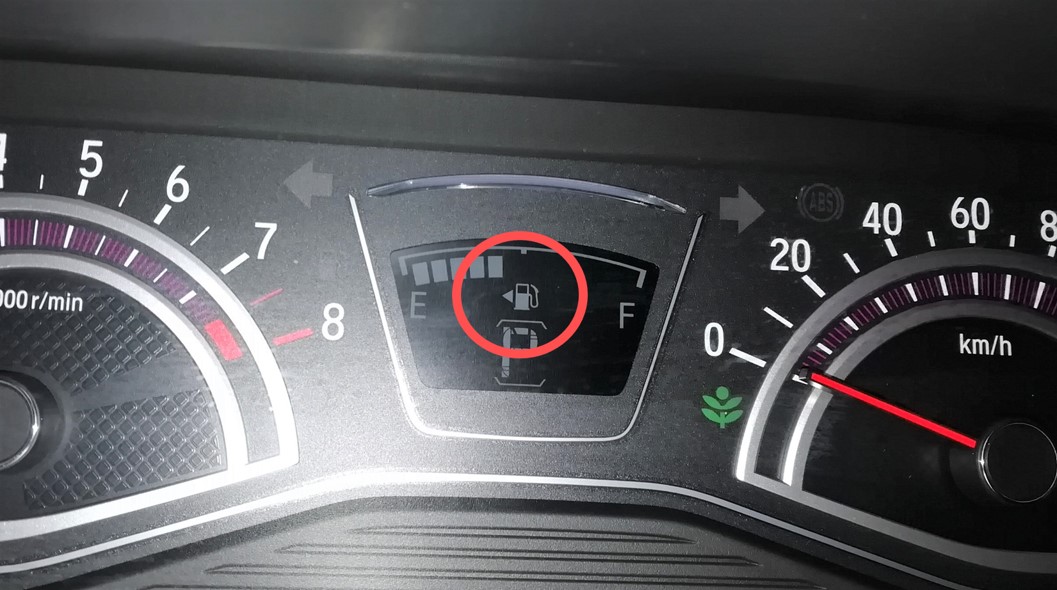 メーターの中にある、給油マークに▲の印が付いています。