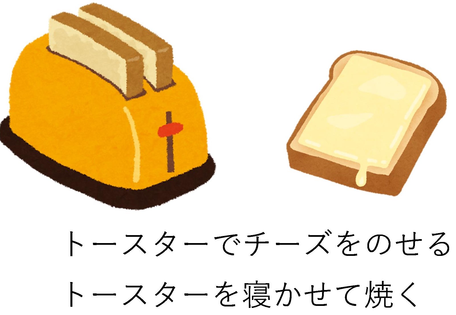 スライスチーズをのせて、食パンを焼く場合、ポップアップトースターでは、チーズが落ちてしまいます。