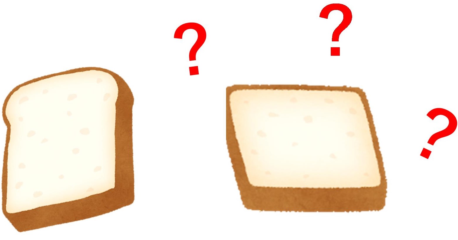 この状態の食パンだと、切っても上下見分かることが困難です。