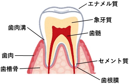 エナメル質の内側の象牙質は、歯ブラシでこすったり、冷たいものや熱いもの等に触れると、その刺激は内部の神経に伝達されて、歯は痛みを感じます。