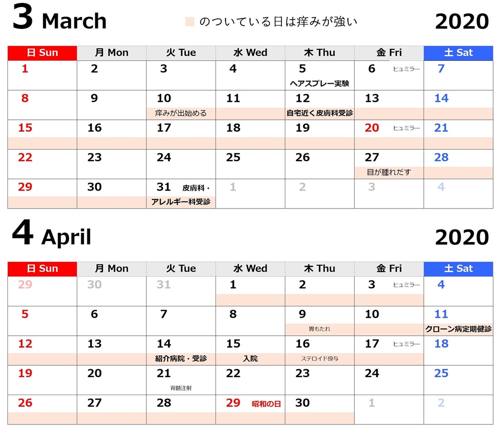 痒み「カレンダー」