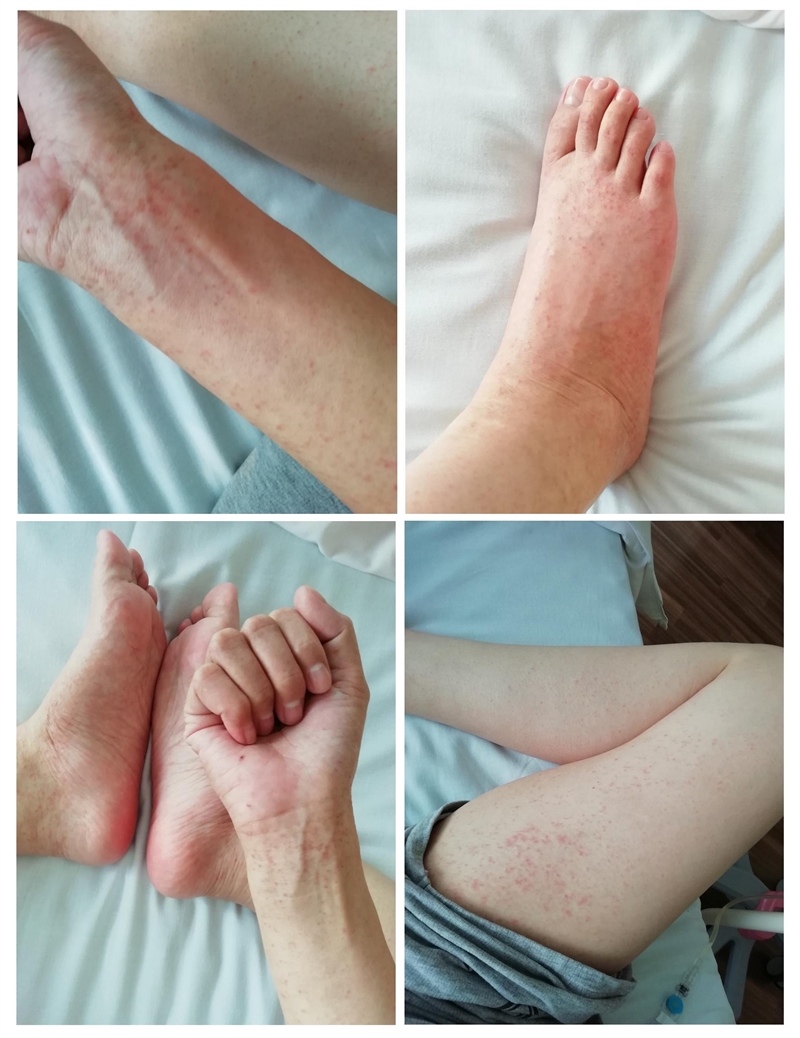 生着して、2週間後からやっと、微熱が出なくなりましたが、体に赤いポツポツが少しづつ出始めました。