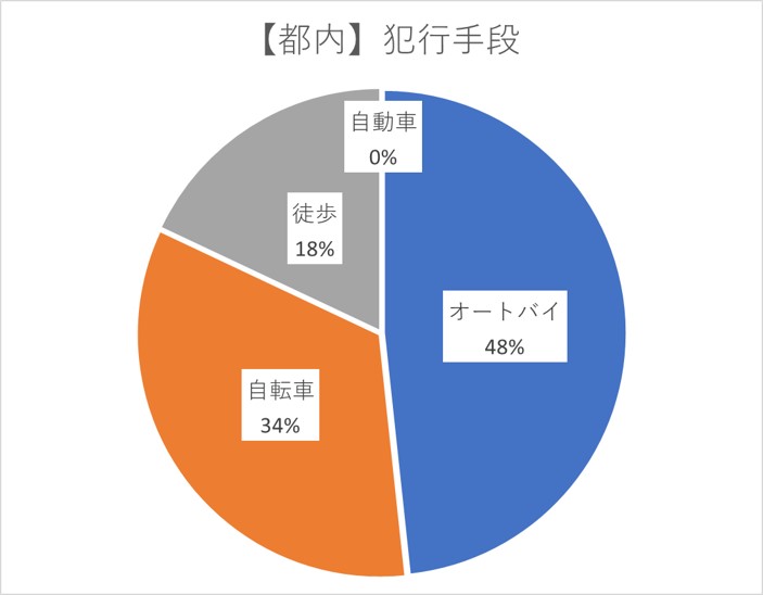 ひったくりを行う犯人は、半分近くがオートバイを使って行っています。