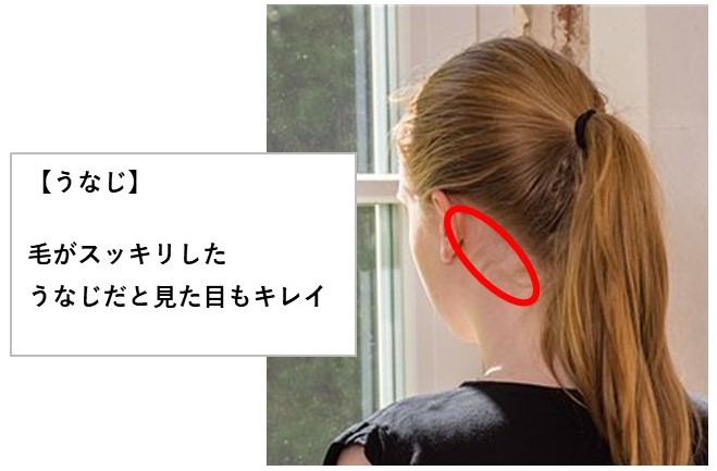 うなじの毛は薄い人もいれば、髪の毛と同じ太さで、毛が生えている人もいます。