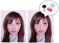 メイクブラシで軽くつけて、全体の色になじませるようにしてください。