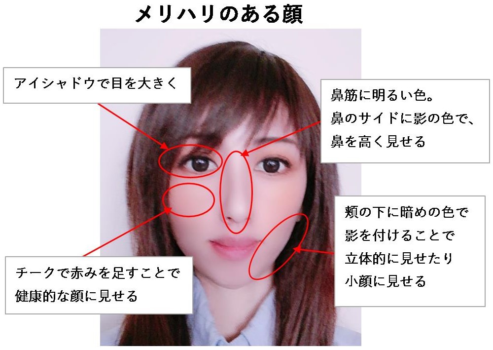 メイクにメリハリをつけることで、ある程度のシミや赤みを目立ちにくくすることが、できるので、メリハリメイクを実践してみてください。