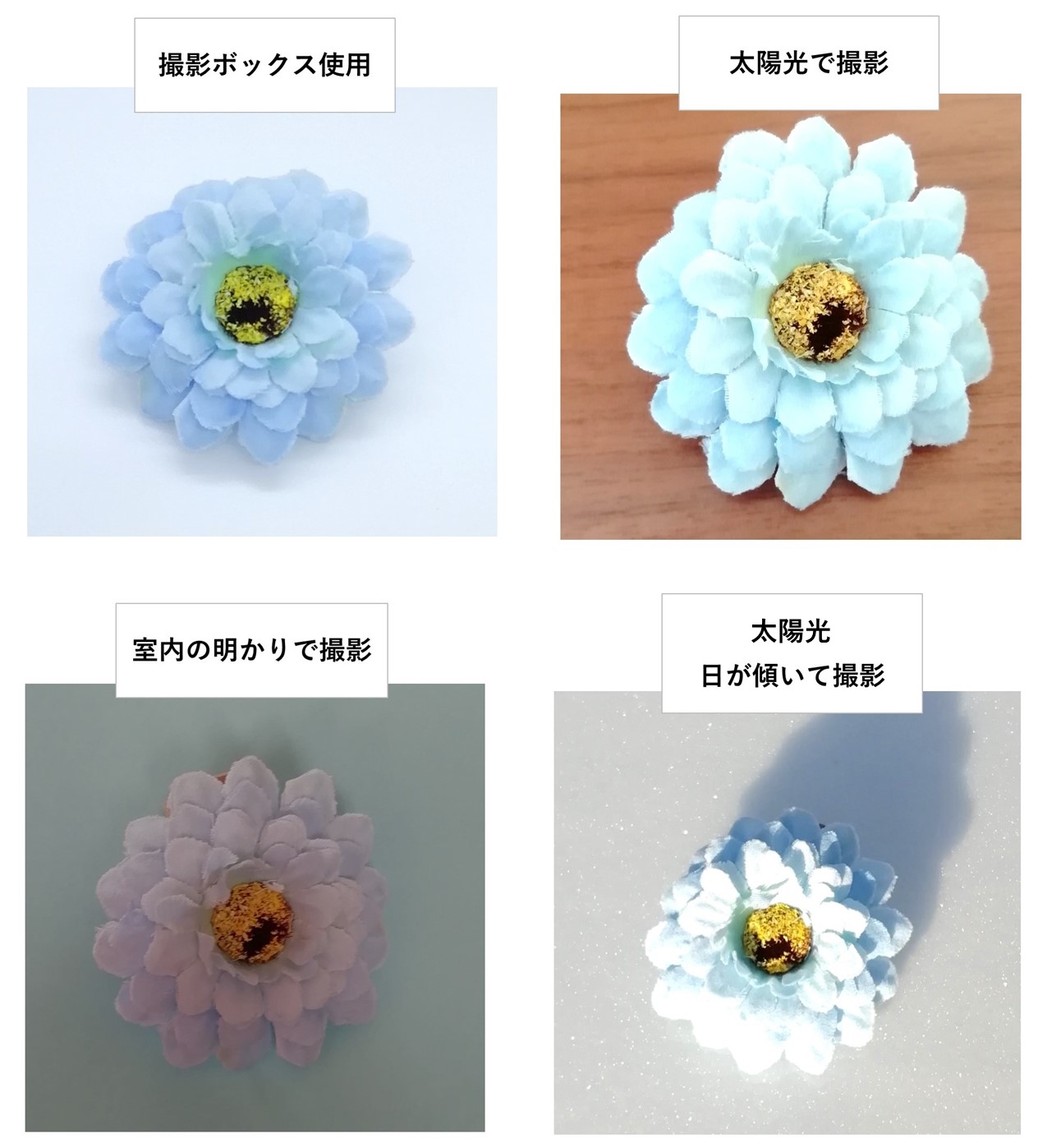 上の写真は、全て同じ条件で撮影し、背景だけを変えています。