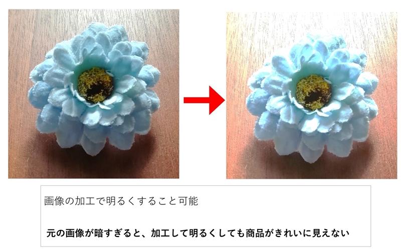 ただし、光の弱さを補うために、商品と明かりを近づけると、少し明るく撮影できます。
