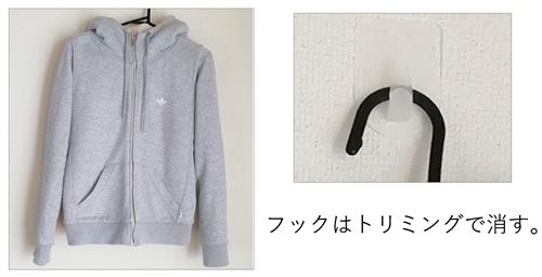 壁用の透明フックがあれば、かける場所がない家でも安心です。