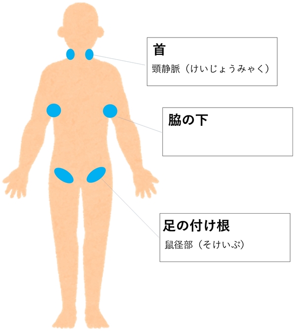 熱中症になった場合や、体が熱くて苦しい時は、皮ふの表面近くにある、太い静脈を冷やすのが最も効果的です。