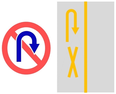 ● Uターン禁止の標識や表示のある場所で、Uターンをすると「指定横断等禁止違反」になります。