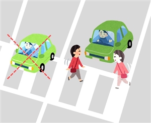 罰則を受けないためには歩行者に先に、横断歩道を通行してもらうようにしましょう。(アイコンタクトでは誤認の可能性があるため不可)