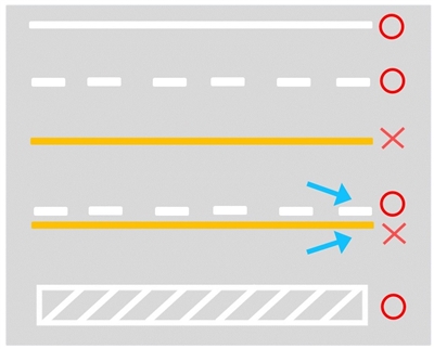 - 白の斜線導流帯(ゼブラゾーン)は禁止事項無し