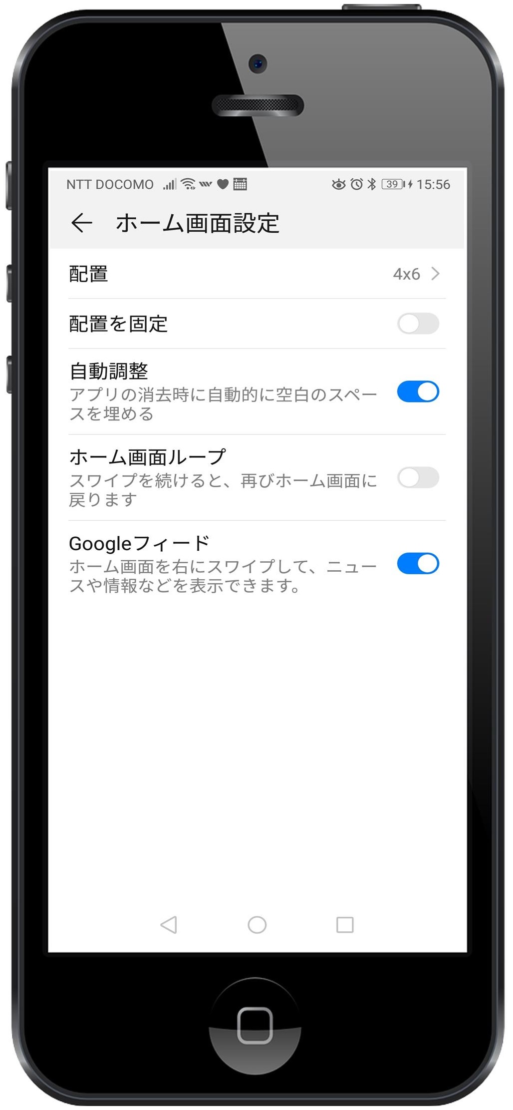 上の画面「 図2.」から「ホーム画面の設定」を選択します。