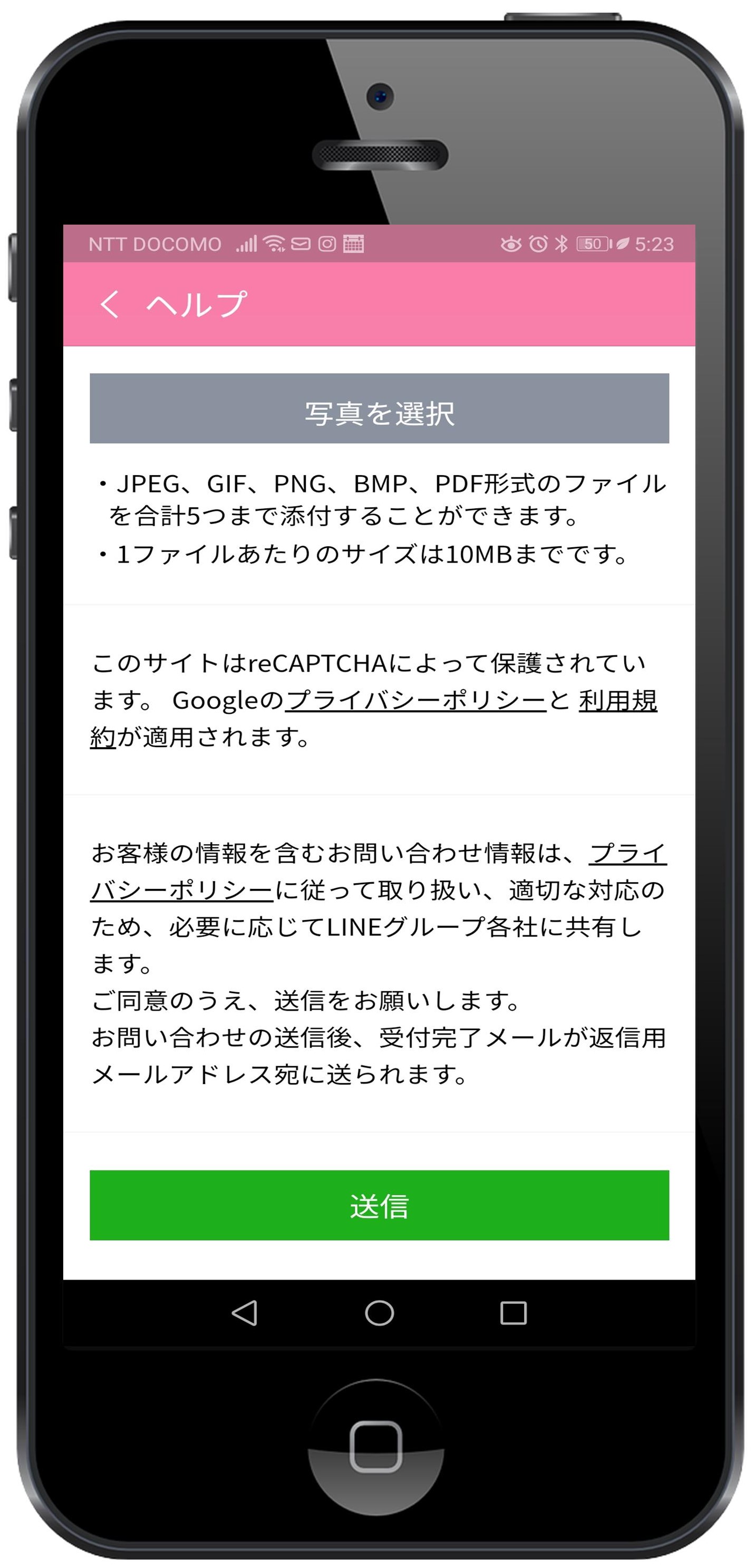 「ヘルプセンター」の画面を、下にスクロールさせ、「お問い合わせ」を選択
