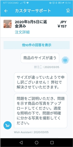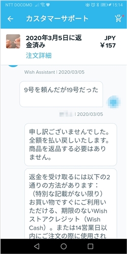 商品の購入は失敗したくないですが、不良品が届いても、「Wish」はしっかり返金してくれます。
