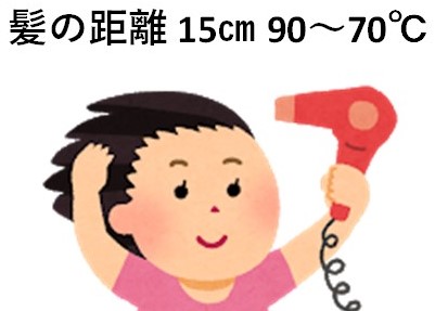 髪の距離が、約15pで、風の温度は90〜70℃です。