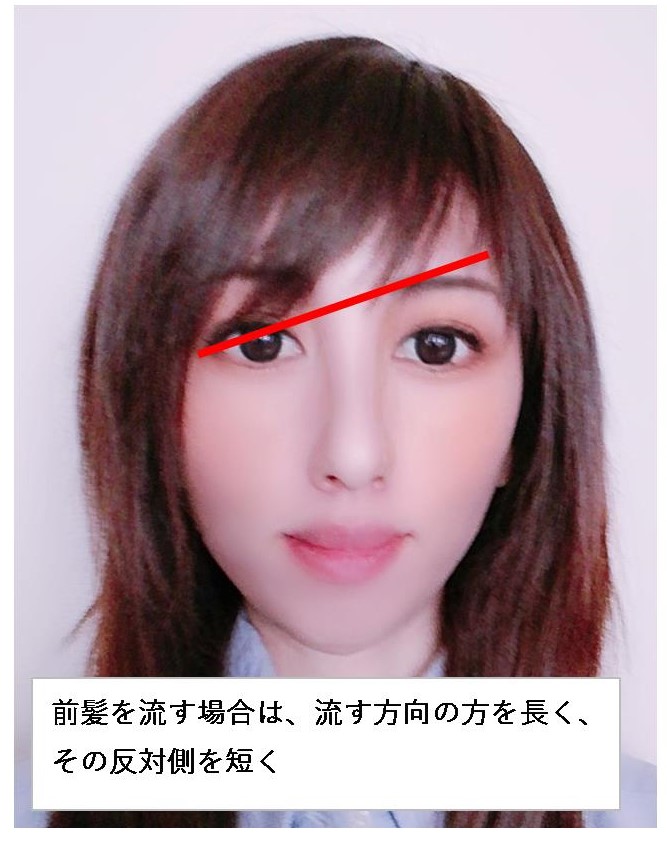 前髪を流したい場合、流したい方向を長くする。