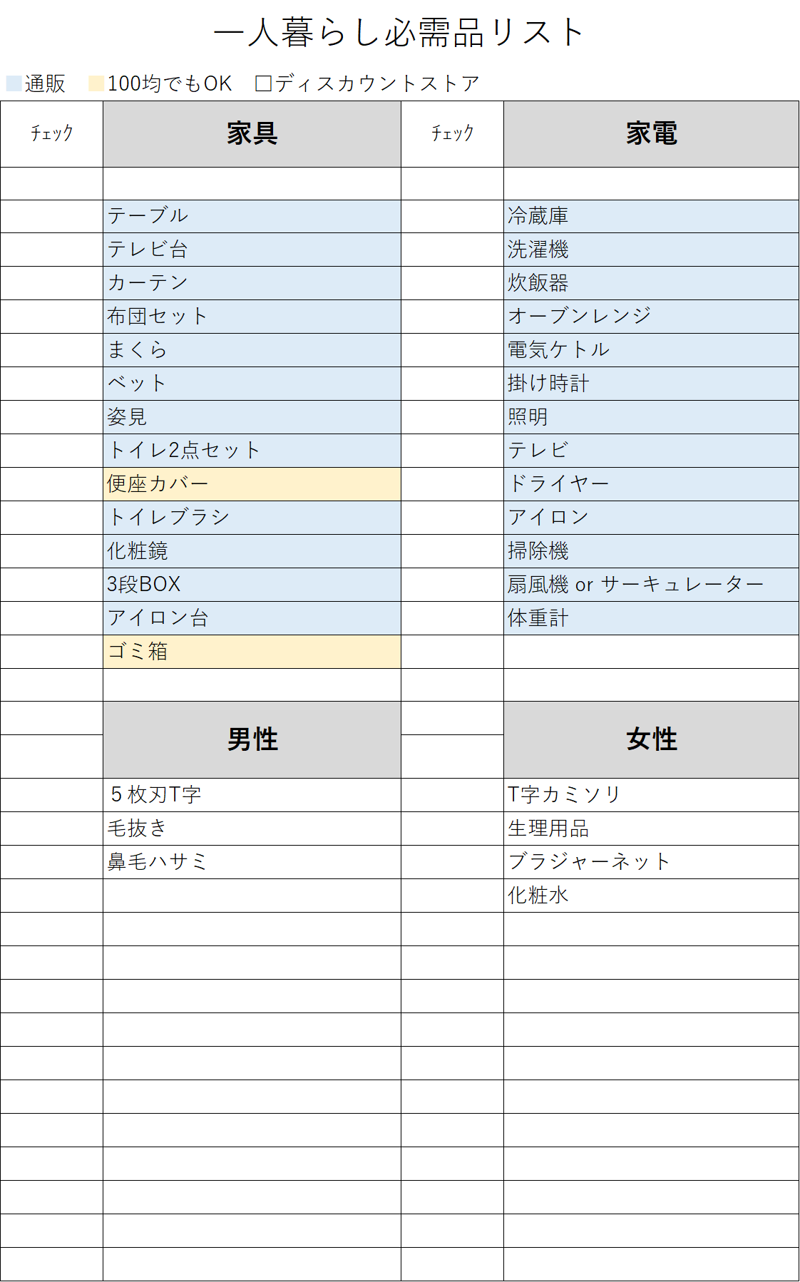【初めて】一人暮らしに必要な物・準備する物―男女別・共通2