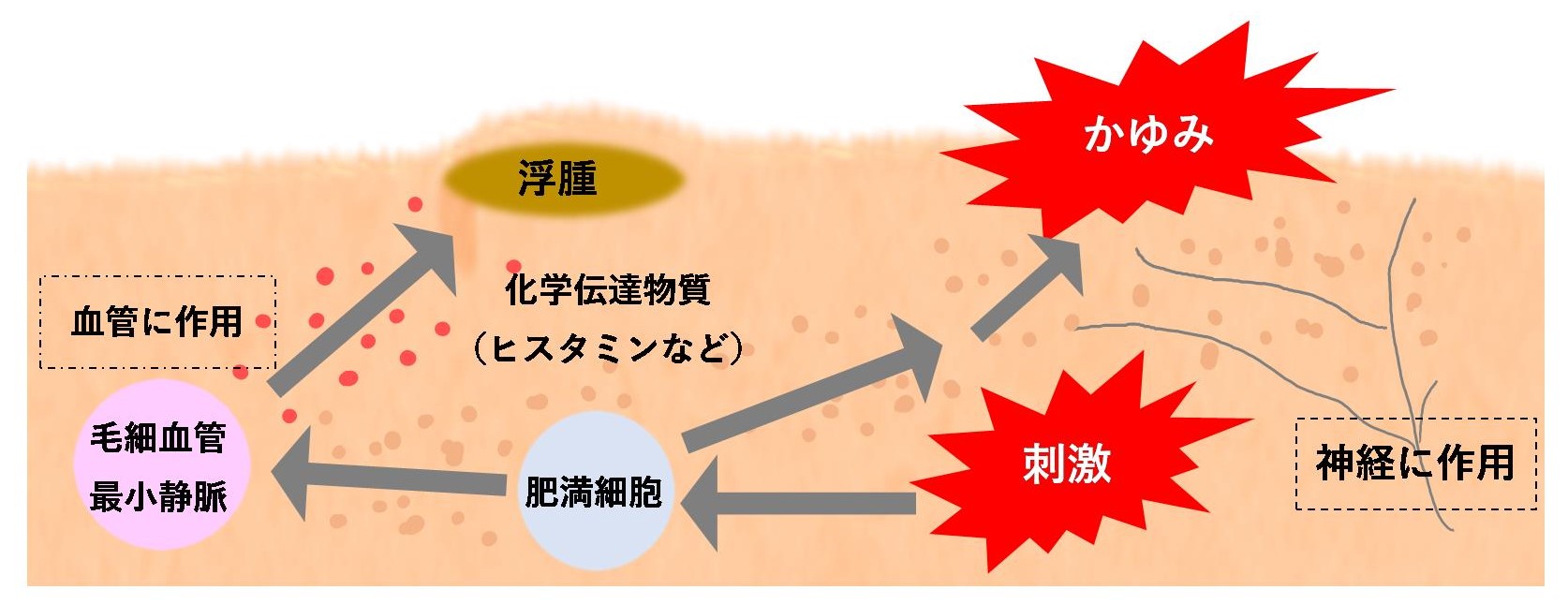 上の図は、痒みの起こるメカニズムを表しています。