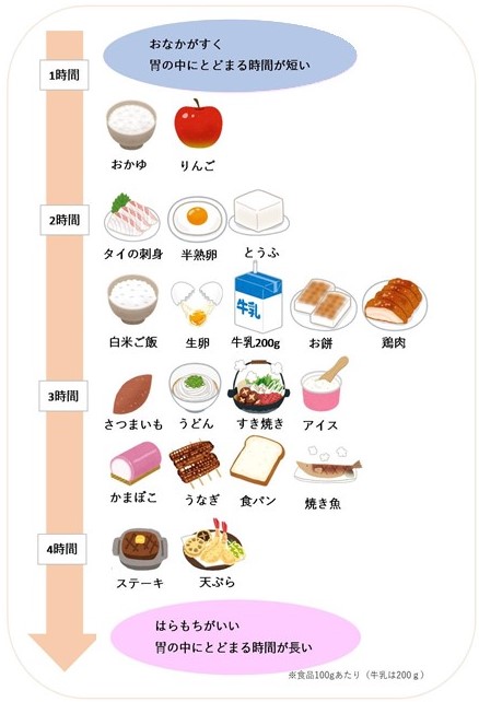 食べ物を食べると、消化のために、胃が活発に動きます。