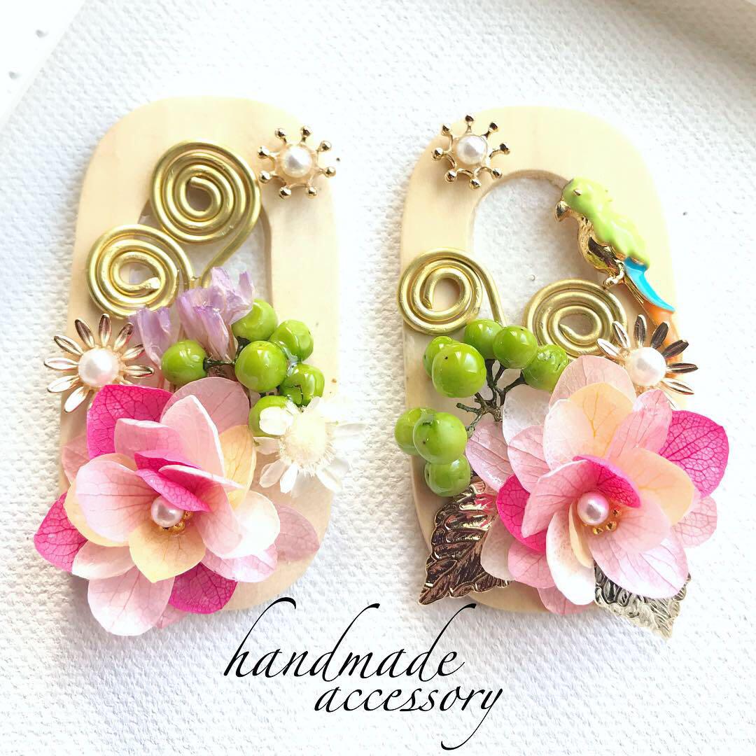 プリザーブドフラワーを使った、ヘアアクセ・ピアス・ブローチなどを制作されている作家さん。