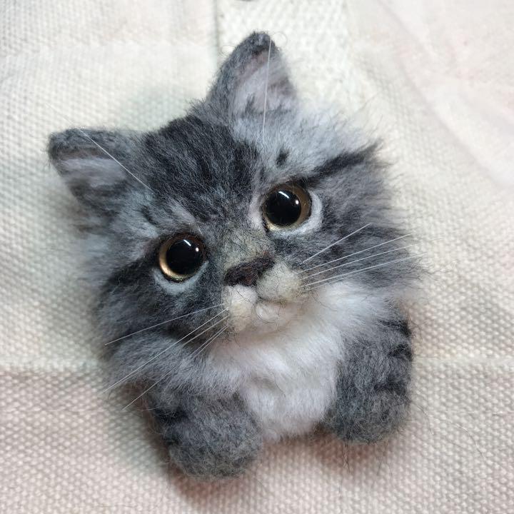 羊毛フェルトで、リアルなネコちゃんのぬいぐるみやブローチを、作成されている作家さん