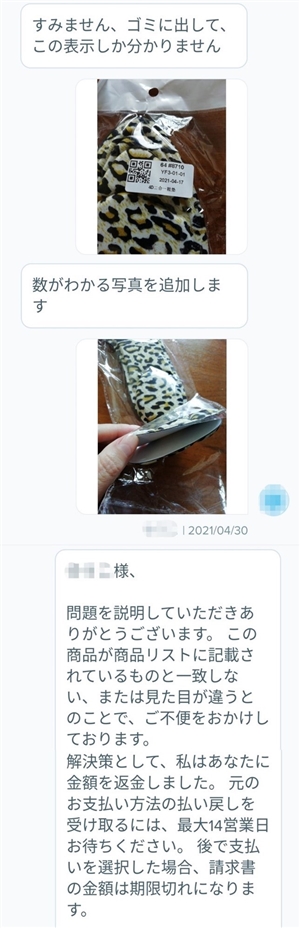 袋の写真は送っていませんが、「Wish」からお金が返金されました。